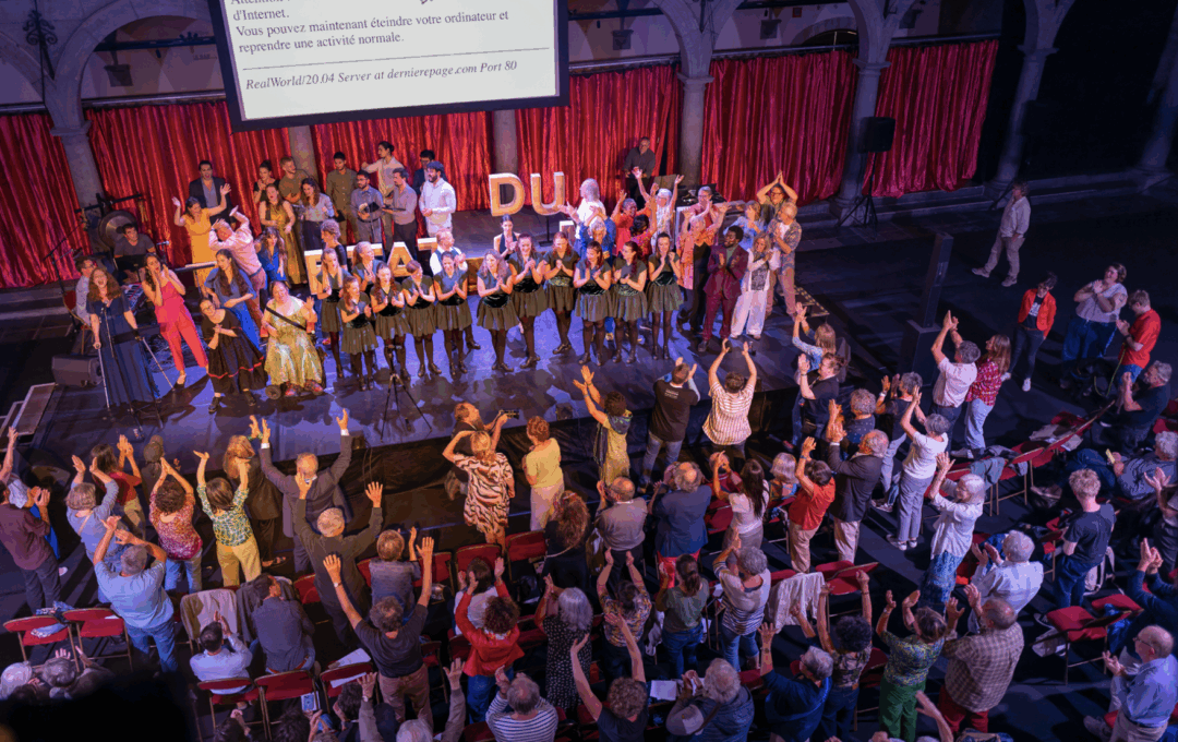 État du Monde ouvre le festival des rencontres Inattendues en posant les premières pierres des thématiques qui seront explorées tout au long du week-end. Ce spectacle offre un instantané des liens qui nous unissent, des relations qui nous façonnent et nous transforment. Sur scène, artistes, musiciens, musiciennes, choristes, amateurs et amatrices se connectent. Les idées se croisent, la musique et la philosophie s’entrelacent. Au centre de ce spectacle, Valérie Cordy, devant son ordinateur, connectée